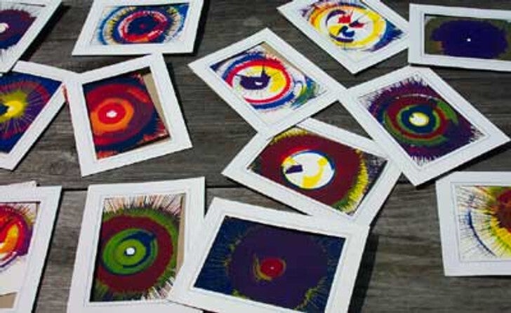 Kid's love to create their own masterpiece while having fun with this spin art machine. It comes with paint and twenty cards & frames. That's enough supplies for 20 kids. This model spin art machine is rated the safest available anywhere. Extra cards and frames are available for $.50 each.